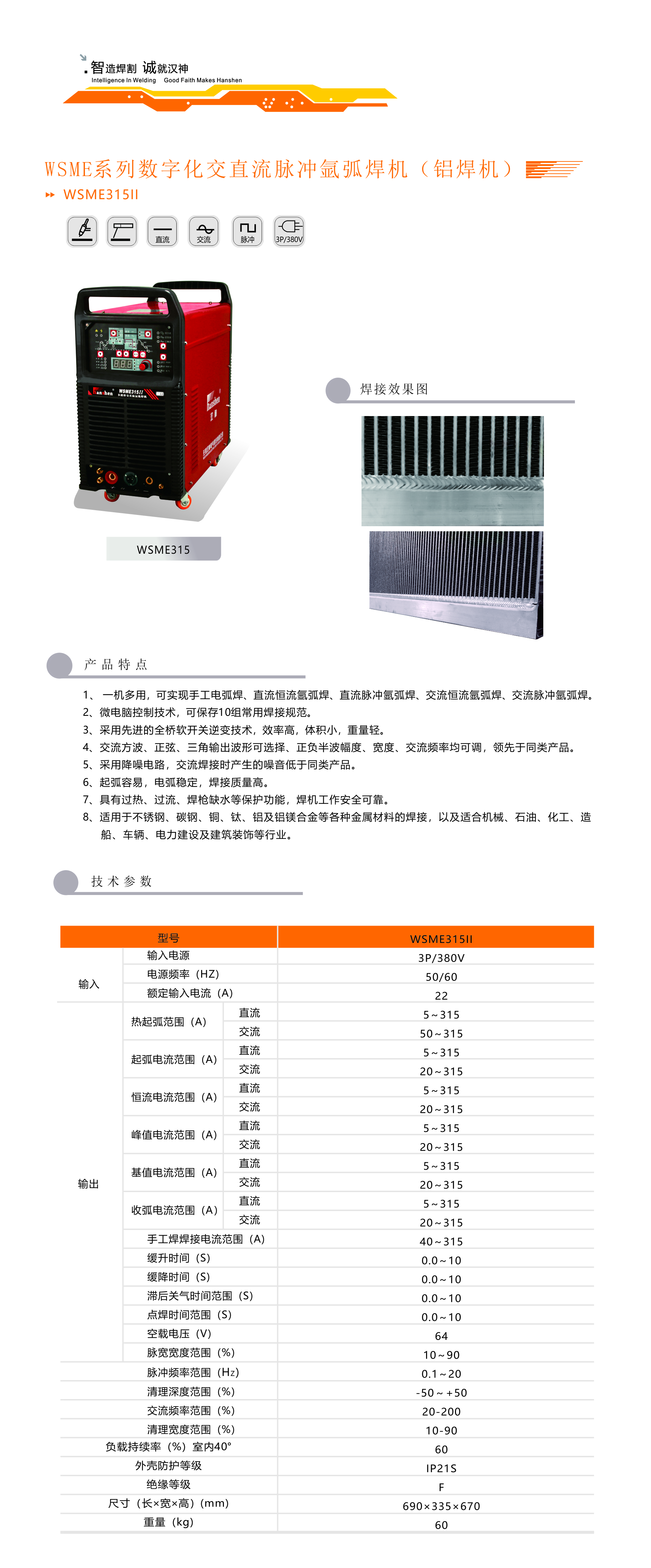 產(chǎn)品名稱:WSME315II數(shù)字化交直流波脈沖氬弧焊機(jī)